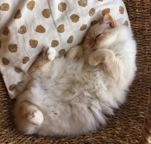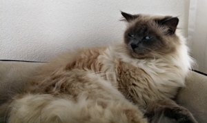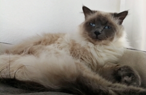 . Wenn er Aufmerksamkeit und Zuwendung möchte, legt er sich gerne mitten in der Wohnung auf den Rücken und miaut so lange, bis man ihm den Bauch krault....