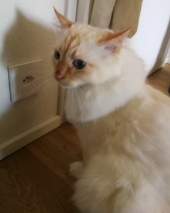 . Wenn jemand Anstalten macht, Richtung Haustüre zu gehen, ist er immer zuerst dort, als ob er nicht möchte, dass man geht. Dies tut er auch mit lautem Gemiaue kund.