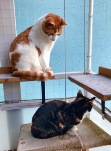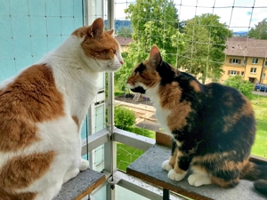 . Die beiden balgen gerne miteinander, spielen zusammen und machen richtige Rundstreckenrennen durch die Wohnung. Sie können auch jederzeit auf den gesicherten Balkon und die Aussicht geniessen.
