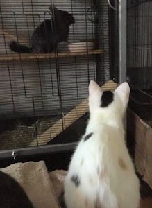 Natürlich habe ich auch heute wieder nur Blödsinn im Kopf und schon die ganze Woche war ich wieder mit Pflegemami’s Chinchillas (oder so) beschäftigt. Ich frage mich noch immer, wie ich in diesen doofen Käfig reinkomme. Ich kann stundenlang davor sitzen und von draussen zuschauen und frage mich, wie ich den wohl aufbekommen könnte. Ich komm einfach nicht drauf