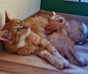 ) und danach wird eine Runde intensiv gespielt und gekuschelt! Wenn unser Mami Lust hat, kommt sie auch kurz schmusen.