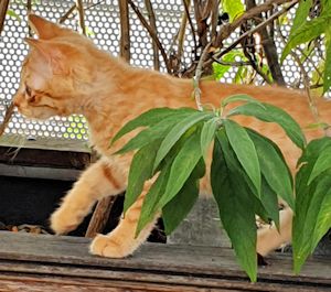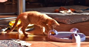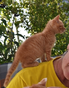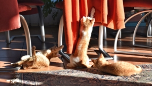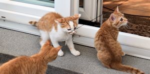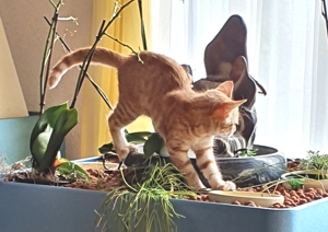 . Wir geniessen jede Minute, in der wir aus dem Zimmer dürfen, und dann drehen wir richtig auf. Wir werden auch immer frecher und testen unsere Grenzen bei den Hauskatzen und den Menschen aus. Da passiert es halt, dass wir angefaucht werden oder sogar mal eine Pfote auf unseren Kopf bekommen