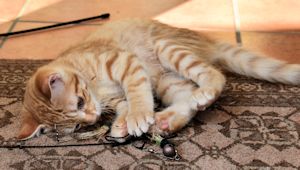 . Das ist so ein merkwürdiges Ding, das komische laute Geräusche macht (die Zweibeiner nennen es Staubsauger)! Also mir macht das immer Angst, Speedy kann einigermassen damit leben. Klein Speiky hingegen kennt da gar nichts und greift mutig den Schlauch oder die Bürste an und behindert die Pflegeeltern bei der Arbeit