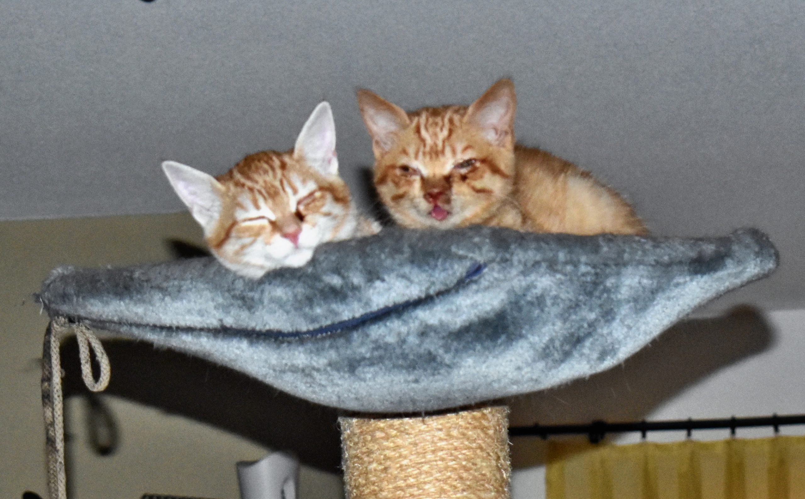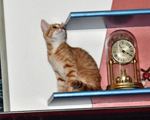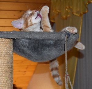 Mein Bruder Speedy hat angefangen die Vorhänge rauf zu klettern, was nicht so Anklang gefunden hat. Beim zweiten Mal hat er gleich eine Dusche bekommen, was wiederum ihm nicht so gepasst hat! Es wird sich zeigen ob er was gelernt hat. Er klettert auch schon wie ich auf die Wohnwand, was für uns eher ein Catwalk ist