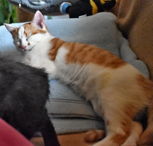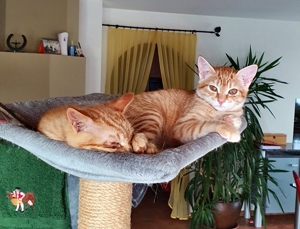 Ein ungleiches Duo sind Speiky, der kleine, feine rote Kater, der einen sehr schweren Start ins Leben hatte und Speedy, sein wunderschöner, „grosser“ Bruder. So verschieden die beiden sind, sind sie doch ein Herz und eine Seele. Es ist unglaublich und wunderschön, wie Speiky sein Leben bisher gemeistert hat und trotz allen Schwierigkeiten ein selbstbewusstes, mutiges und aufgeschlossenes Kerlchen geworden ist, der mich gleich neugierig und vertrauensvoll begrüsst hat