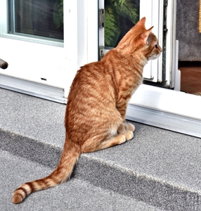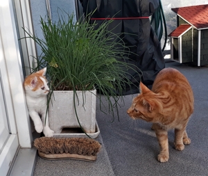 Speedy hat am Wochenende noch herausgefunden wie das Katzentürli auf die Terrasse funktioniert. Nun haben unsere Pflegeeltern noch etwas mehr Arbeit, da sie noch nicht wollen, dass wir unbeaufsichtigt auf der Terrasse Blödsinn machen. Wenn sie aber das Türli verriegeln reklamieren natürlich die Hausbüsis!