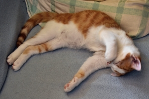 Danach haben wir bis am späteren Nachmittag Ruhe vor den Zweibeinern. Pflegepapi kommt dann wieder mit Futter, Nasen- und Augenreinigung (geht uns langsam aber sicher auf den Geist