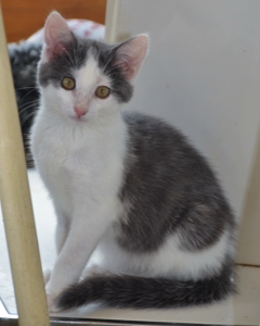 . Er mag es, draussen auf dem Balkon zu sein. Seine Besitzerin führt ihn auch gelegentlich an der Leine unten im Hof herum, was er sehr geniesst. Seine Schwester Leia ist nur wenig zurückhaltender. Auch sie geht unbeschwert auf Besucher zu. Sie ist eine äusserst hübsche, zierliche junge Katzendame mit einer tollen Fellzeichnung und ausdrucksvollen, grossen Augen. Die Welt draussen findet sie aber (noch) nicht so spannend wie ihr Bruder.