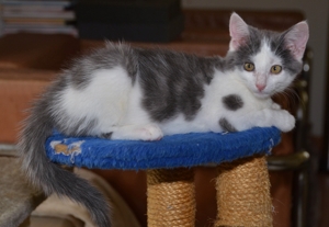 Luke ist ein kleiner Lausbub, sehr verfressen und etwas frech. Wenn er Hunger hat macht er sich lautstark bemerkbar und springt schon mal auf die Küchenkombination