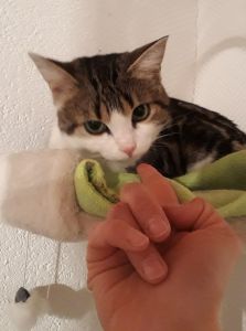 Mit vereinten Kräften schafften wir es, ihr die notwendige Impfung zu verabreichen und waren heilfroh, als wir wieder zu Hause waren, mit Katze. Seitdem sie wieder zurück und in dem Zimmer ist, kommt sie allerdings nicht aus ihren Verstecken hervor. Scheinbar ist das kleine „Raketchen“ nun auch noch sauer