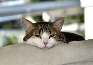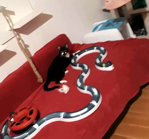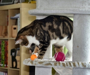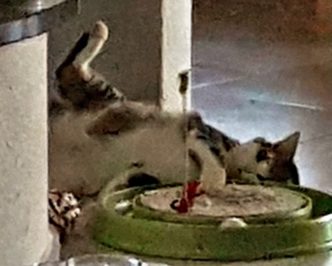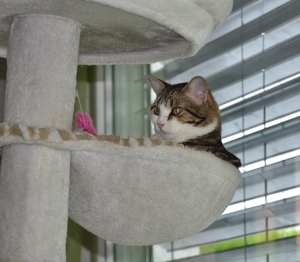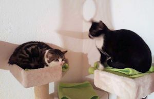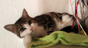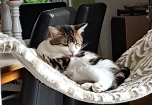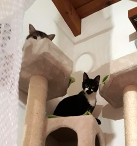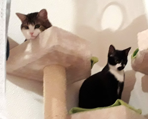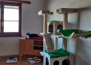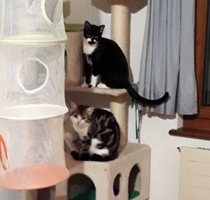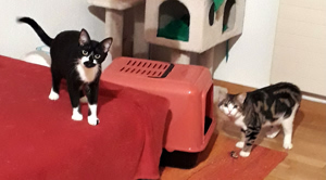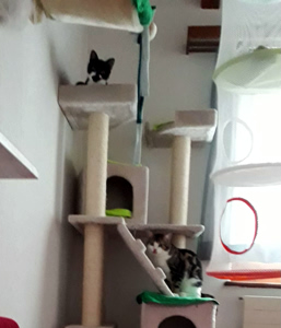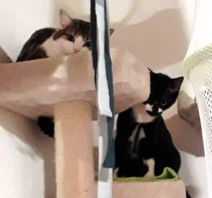 Inzwischen ist eine Woche vergangen und wir sind uns immer noch nicht sicher, ob sie sich verstehen oder einfach nur gemeinsame Sache machen. Ab und zu sieht unser kleines Katzenparadies so aus als wäre es sehr wild hergegangen. Decken liegen auf dem Boden, Sachen sind durcheinander und man sieht, es war Action in der Bude. Aber kaum ist man anwesend, sind beide sehr zurückhaltend in ihrer eigenen Ecke. Das werden zwei härtere Nüsse und wir hoffen, mit sehr viel Zeit, Geduld und Aufmerksamkeit, ihnen ein gutes Gefühl vermitteln zu können bevor sie uns verlassen.