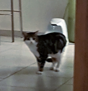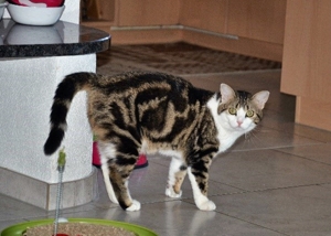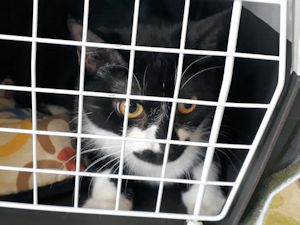 Die Fahrt zum Arzt verlief sehr ruhig, auch im Warteraum gab sie kein Tönchen von sich. So dachten wir, dass sie ein wenig starr vor Angst ist und öffneten, wie wir nachher feststellten, unbedacht den oberen Teil der Transportbox. Sie war so schnell und rannte wiederum wie von der Tarantel gestochen, nur dieses Mal durch die Praxis