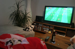Bella ist immer sehr verschmust und liegt gerne auf unseren Bäuchen herum oder nutzt das Sofa für ihren Zweck. Als wir sie mal mit ins Bett nahmen fühlte sich Bella so wohl, dass sie plötzlich genussvoll auf unserem Kopfkissen ihr Geschäft verrichtete. Leider kann man in solchen Situationen Bella gar nicht böse sein, da Bella dich danach mit einem solch süssen Blick anschaut, dass den härtesten Kerlen die Herzen schmelzen würden. Auch liebt es Bella auf unseren Bäuchen oder Beinen zu liegen und sich richtig zu entspannen. Beim WM- Spiel zwischen der Schweiz und Costa Rica, lag sie den ganzen Match auf unserer Schweizer Flagge und kann als der süsseste Supporter der Schweizer Nationalmannschaft angesehen werden.