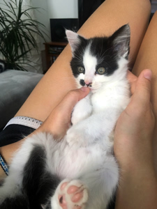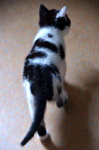 Unsere kleine hyperaktive Lady ist immer unterwegs, sie hält fast nie inne. Wenn man barfuss läuft, beisst sie auch mal gerne in einen Zeh. Beim Knuddeln wechselt sie zwischen «Finger beissen» und «Finger abschlecken» ab. Wenn man die Türe zum Schlafzimmer offen lässt, ist Lala die erste, die über das Nachtischchen das Bett erklimmt. Lala ist so schnell und flink, dass kein Hindernis zu hoch oder unerklimmbar scheint. Manchmal rennt Lala über das Sofa, via Tisch zum nächsten interessanten Gegenstand, was so schnell gehen kann, dass es scheint als sei Lala überall.