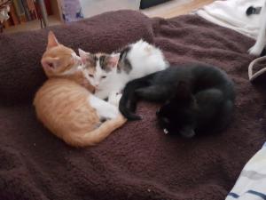 Auch uns drei hat es nach der Impfung erwischt, Mambo und Miu hatten entzündete Augen und Jasiri einen hartnäckigen Schnupfen. Wir mochten genausowenig spielen und Quatsch machen wie Mama!