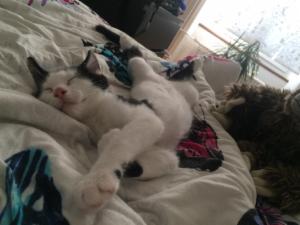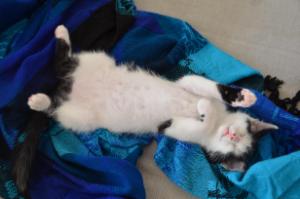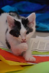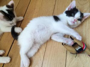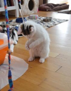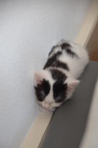 Jetzt sind wir bereits fast zwei Monate in unserer Übergangsfamilie. Die letzten zwei Wochen waren wir sehr aktiv und langsam aber sicher sind wir keine kleinen Büsis mehr, sondern junge Katzen. Wir klettern in der ganzen Wohnung herum und erklimmen Möbel, die zuvor noch zu hoch für uns waren. Manchmal sind wir auch ein wenig zu wild und wir machen im Spiel schon mal etwas kaputt. Wenn unsere Eltern gerade nicht hinschauen, verbeissen und zerreissen wir gerne das Haushaltspapier, Zeitschriften oder was halt so rumliegt.
