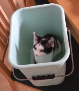 Ein anderes Mal, als sie mit dem Wassernapf herumgespielt hat, hat sie das Wasser ausgeleert und ist dann mit dem Napf im Mund in der Wohnung herumgerannt. Allgemein liebt sie es Gegenstände in der Wohnung herumzuziehen. Letta mag es auch immer wieder neue Orte zu entdecken oder in enge Öffnungen zu klettern. So fanden wir sie bereits im Katzenstreusack, im Kühlschrank oder im Ofen. Man muss also schon gut aufpassen, wenn man kurz etwas offen lässt.
