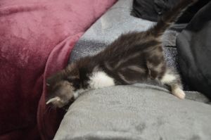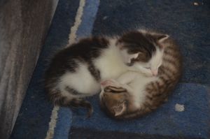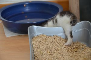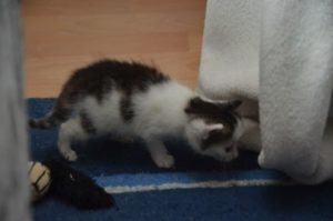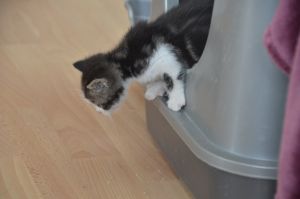 Als wir im Kittenklo spielten kam sie sogar zu uns und versuchte uns erneut hinter das Sofa zu locken. Doch wir blieben standhaft, denn es gefiel uns mehr uns gegenseitig zu verkloppen