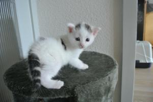 . Ich bin bereits jetzt ein riesiger Schmusekater, und mag es geknuddelt zu werden. Ich beobachte immer sehr genau was die anderen machen, bevor ich mich in ein Abenteuer wage. Doch fand mich meine Pflegemama auch schon ausserhalb von unserem Spielzimmer…