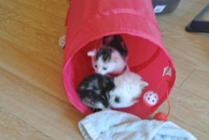 Ich bin dabei ihnen beizubringen wie man eine grosse Katze wird, zeige ihnen das Fressen und alles andere was dazu gehört