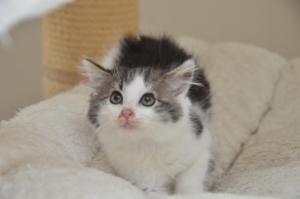 Der Frechste von allen ist Kaleo. Er zeichnet sich durch seinen süssen weissen Schwanzspitz aus und ist sowas von vorwitzig und neugierig. Nichts hält ihn und er kann stundenlang toben und spielen. Er ist lieb, verschmust anhänglich und einfach ein süsser Fratz.