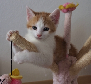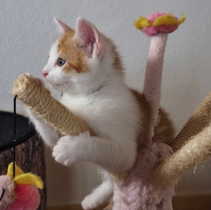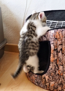 . Es wurde mit allem gespielt, was gerade greifbar war, vor allem die kleinen Filzbällchen wurden mit grosser Begeisterung herumgetragen. Meistens haben sich die kleinen Racker aber im Klettern und herumbalgen miteinander geübt.