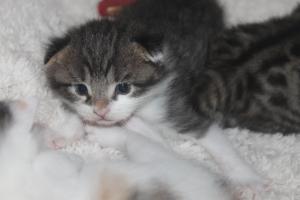 Jasiri entwickelte sich ganz normal wie seine Schwester auch, aber mit knapp 1 Woche habe ich bemerkt, dass er doch anders ist als sie! Die Beine hatten eine unnatürliche Haltung und er wirkte „flacher“ als seine Schwester Miu.