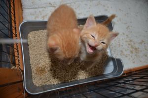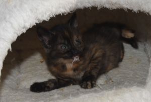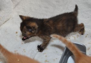 Heute kam Margot mit einem weiteren Kätzchen vom Bauernhof heim. Es wurde als einziges eingefangen und damit es nicht alleine aufwachsen muss, wird es in unsere Gruppe gegeben, denn es könnte ja eine Cousine von uns sein. Die Kleine ist ziemlich frech und vorwitzig; fauchte auch gleich, als Manu sie aus der Transportbox nehmen wollte und war ein ganz klein wenig unsicher