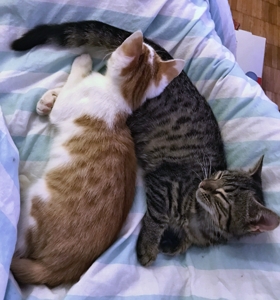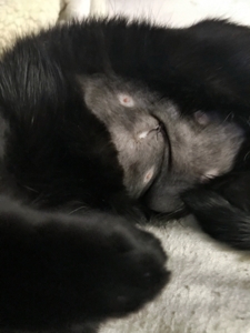 . Nach 30 Minuten lagen sie todmüde auf dem Sofa und schliefen erst einmal ein paar Stunden. Mia muss leider immer noch in „Einzelhaft“ bleiben… Nach den ersten Tagen mit der Pilzbehandlung wurde es zuerst schlimmer, aber nun geht es bergauf. Aber solange sie nicht gesund ist, darf sie leider nicht zu den anderen.