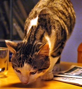 Aliano hat sich schon nach wenigen Tagen, nachdem er hier war entschieden, dass fauchen nichts nützt und sich geöffnet, seitdem ist er immer zutraulicher geworden. Wenn er das Gefühl hat er will jetzt gestreichelt werden, kommt er mit hoch erhobenem Schwanz und schmiegt sich an die Beine, seine Schwanzspitze, ist dabei immer leicht gebogen. Er hat einen sehr bemerkenswerten Schwanz, er kann diesen kringeln und tut dies sehr oft, er sieht dann aus wie eine Katze aus dem Bilderbuch