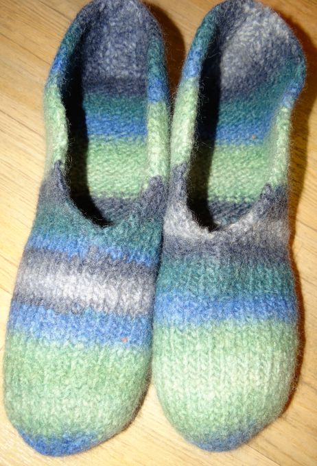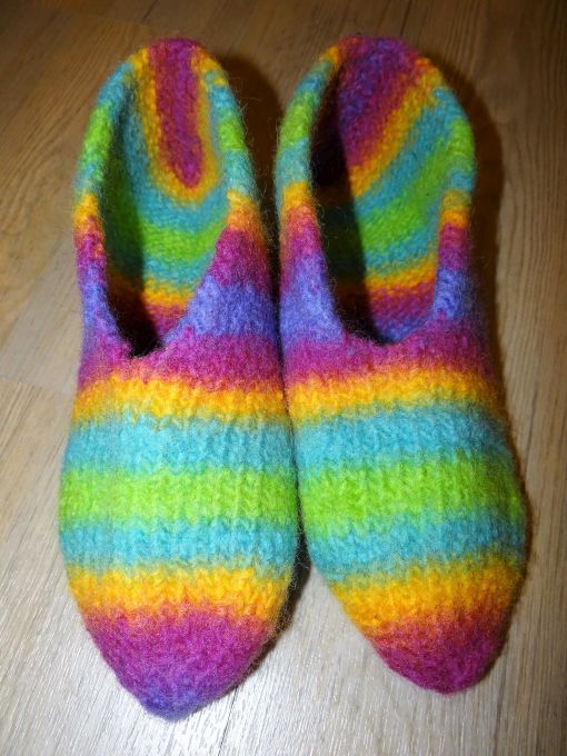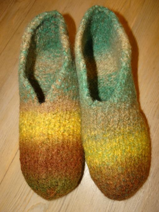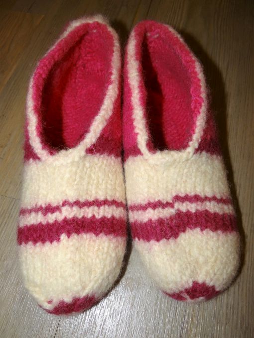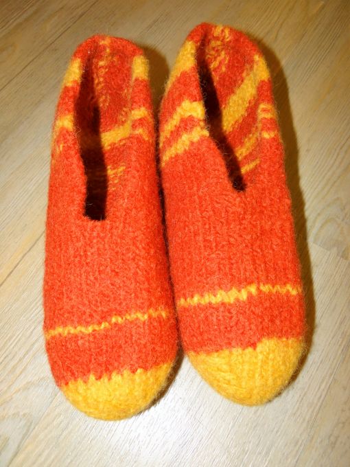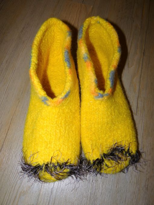 Die Finken sind aus Wolle hergestellt und zusätzlich gefilzt.