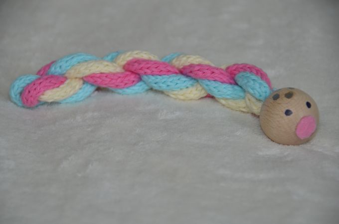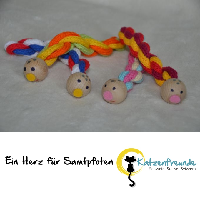 Unsere Strick Raupe findet Anklang bei Samtpfoten, da sie sie herum werfen und mit ihr toben können, wie es ihnen Spass macht. Sie wirbeln die Raupe durch die Luft, ergötzen sich am Klang, wenn das Holzteil zu Boden fällt und geniessen es sichtlich, mit ihr zu spielen.