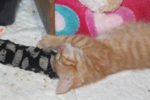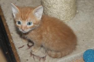 Auch Norek gehört zu einem der Sorgenkinder. Seine Augen wurden immer schlechter und sprachen einfach nicht auf Therapien an. Ein Abstrich zeigte dann auch, was wir befürchtet hatten. Katzenschnupfen! Hört sich harmlos an, kann aber die Kleinen bis an die Grenzen bringen! Die Medikamente wurden angepasst und doch setzte die erhoffte Besserung einfach nicht ein! Das Auge wurde immer schlimmer, auch war es für Norek schmerzhaft wenn man da etwas machen musste!
