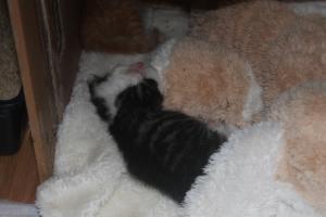 Nur langsam scheinen die Augentropfen nun zu helfen und das neue Antibitoka welches alle seit ein paar Tagen bekommen! Da der Katzenschnupfen auch die Schleimhäute angreift, hatten vor allem Sinus und Norek ständig offene Stellen im Mund und auf der Zunge! Trotz allem haben die beiden gefressen und haben nicht gross Gewicht verloren.