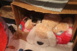 Zu Hause angekommen gab es eine Erstversorgung mit Futter und Milch und Medikamenten. Termin beim Tierarzt war gleich am Morgen! Mit Antibiotika und Schmerzmedikamenten und viel Fürsorge vesuchten wir die 4 wieder auf die Beine zu bekommen.