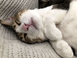 Mein Markenzeichen ist, dass ich beim Streicheln und laufen manchmal wackle… das habe ich seit ich ein kleines Kitten war. Es stört mich jedoch weder beim Spielen noch beim Klettern. Meine Pflegemama ruft mich manchmal mit «Gwackli» an, was ganz passend ist und so komme ich dann manchmal auch auf diesen Übernamen hin angetänzelt