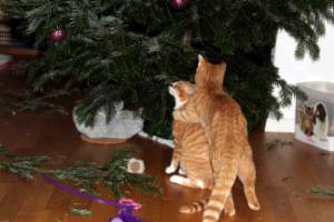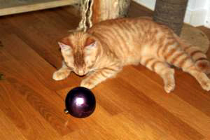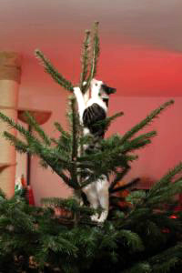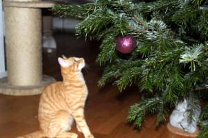 ! Komisch nur, das der bei uns im Wohnzimmer steht und unser Pflegemami auch noch so komisches Glitzerzeug und Fakelstäbe daran platzierte! Aber mit dem ganzen Krimskrams wird der Baum noch spannender und es animiert richtig zum spielen und vor allem darin rumklettern! Die Kugeln sind auch ganz toll, wenn man die vom Baum pflückt, so kullern die wunderbar in der Wohnung herum