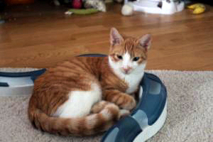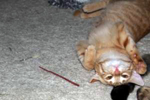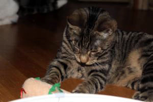 ! Im Verstecken ist sie übrigens auch sehr gut, kaum merkt sie, dass SIE zum Tierarzt muss! Manchmal hat sie Tage, da geht sie uns auch aus dem Weg und möchte einfach nicht mit uns spielen. Sie ist immer noch sehr hungrig und wenn der Teller leer ist und das Pflegemami nicht schnell genug ist, so beisst sie ihr immer in die Zehen oder die Nase. Norek hat das unterdessen schon super kopiert und macht es nun auch wenn er Hunger hat