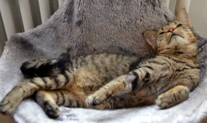. Wenn er mal nicht am Spielen oder Essen ist, findet man ihn gerne in seiner kleinen Höhle, dem Innenraum des Kratzbaumes, in welcher er den Überblick über das Geschehen hat. Gerne liegt er auch auf der Heizungsliege und räkelt um die Wette. Zazu liebt es gekrault zu werden und dabei streckt er sich und schnurrt wie ein kleiner König.