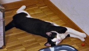 ! Das ist gut gelungen, denn er mag uns sehr, er liebt es mit uns zu spielen und wenn Aliano sich vor seine Füsse schmeisst, dann muss er einfach streicheln! Somit hat der Pflegepapi wohl nur halb soviel gelernt wir er wollte, aber wir haben seine Ferien versüsst und ihm den Alltag entschleunigt, das können wir Katzen nämlich besonders gut!